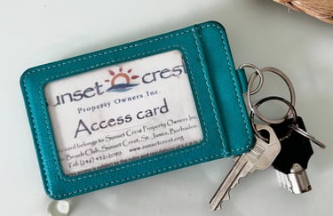 Your master key includes a Beach Club access card (see video above). One card admits two persons (children included). When asked, fill out their form and indicate your stay at Sea Salt Studios. Access is for registered guests only; no outside guests allowed. The card must remain on the keychain at checkout. Violations result in revoked access.
